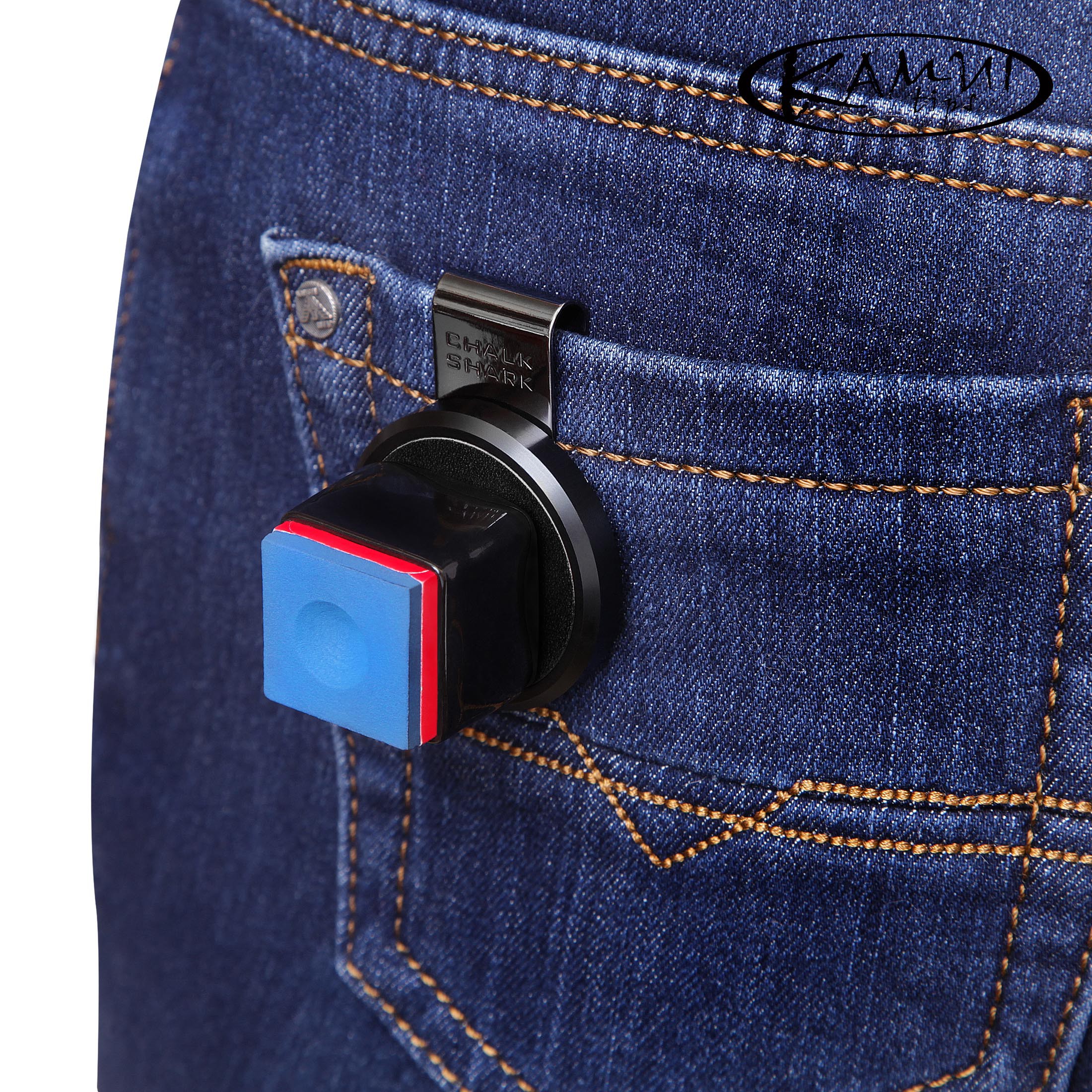Держатель для мела с магнитной системой и стальным зажимом — очень удобный и практичный аксессуар обладающий стильным дизайном. Двойная магнитная система отличается особой надежностью. Она состоит из магнитного диска, вставленного в кожаную оболочку с фирменным знаком KAMUI. Диск прикреплен к стальному зажиму. Для мела имеется эластичный резиновый чехол и крышка. В чехол вставлена металлическая пластина для магнитного крепления.