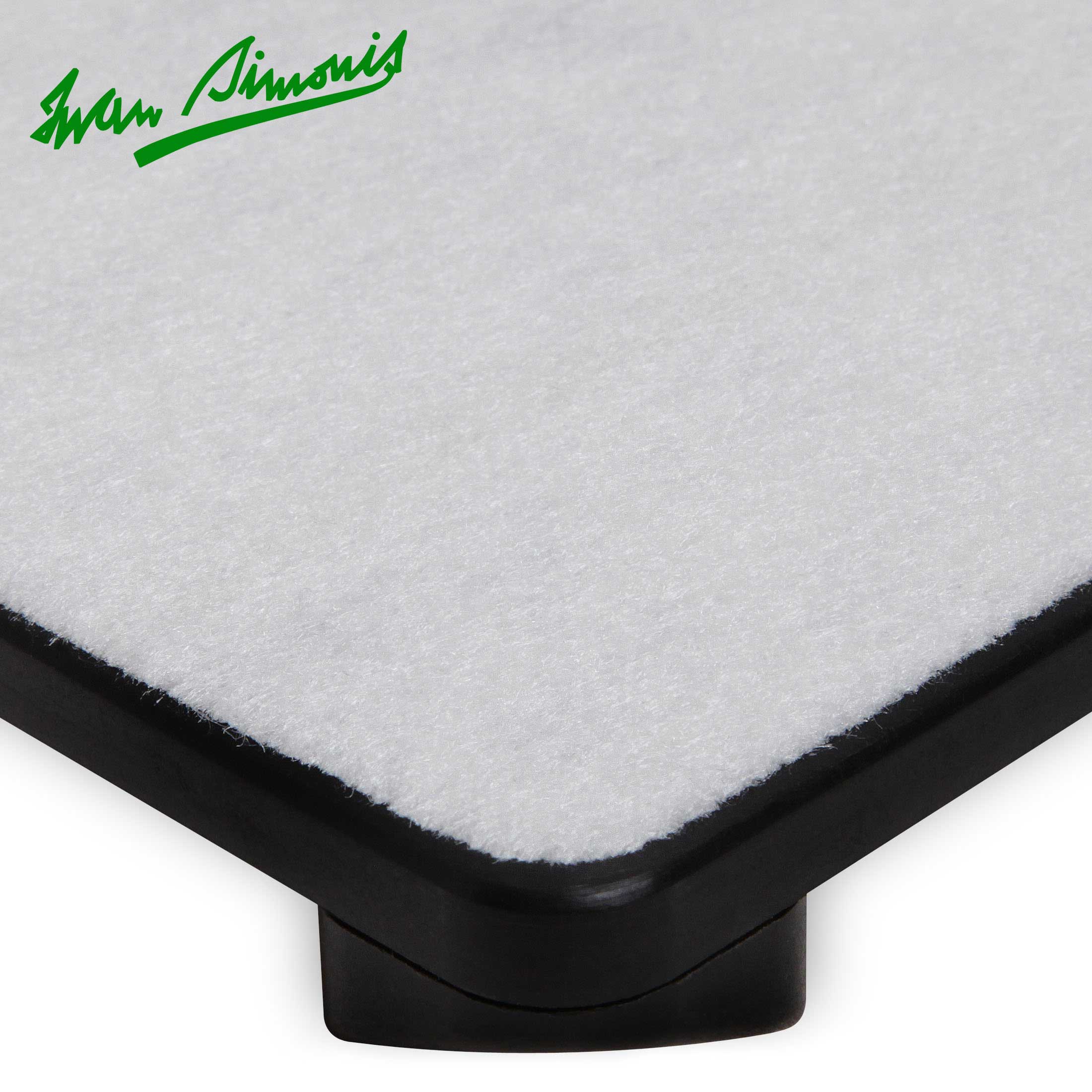Для постоянного поддержания игровой поверхности стола в порядке, т.е. устранения меловой пыли, вам больше не нужны будут ни традиционная щетка, ни ежедневное использование пылесоса, ни техническое приспособление, которое, вероятнее всего, растянет, обесцветит ткань или изменит ее свойства. Simonis X-1 извлекает пыль из самого основания сукна и удерживает ее в своем революционном высокотехнологичном устройстве!