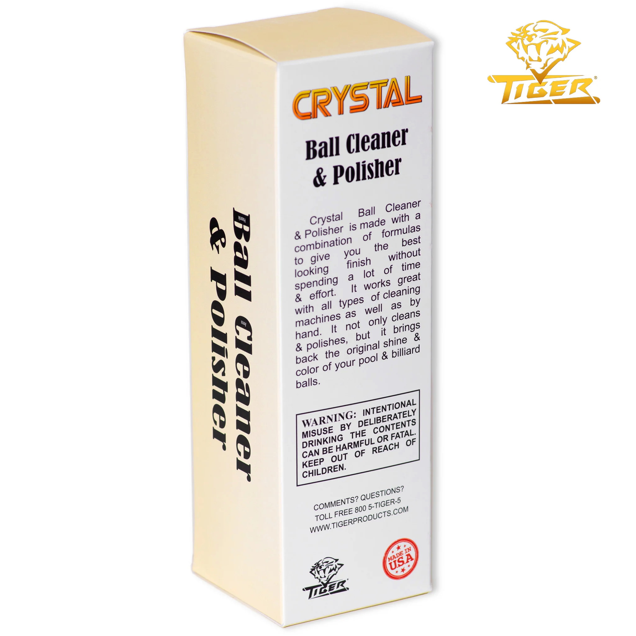 Один из мировых лидеров по производству наклеек и средств по уходу за бильярдной продукцией, калифорнийская компания Tiger Products, представляет профессиональное средство для чистки и полировки шаров Crystal Ball Cleaner and Polisher