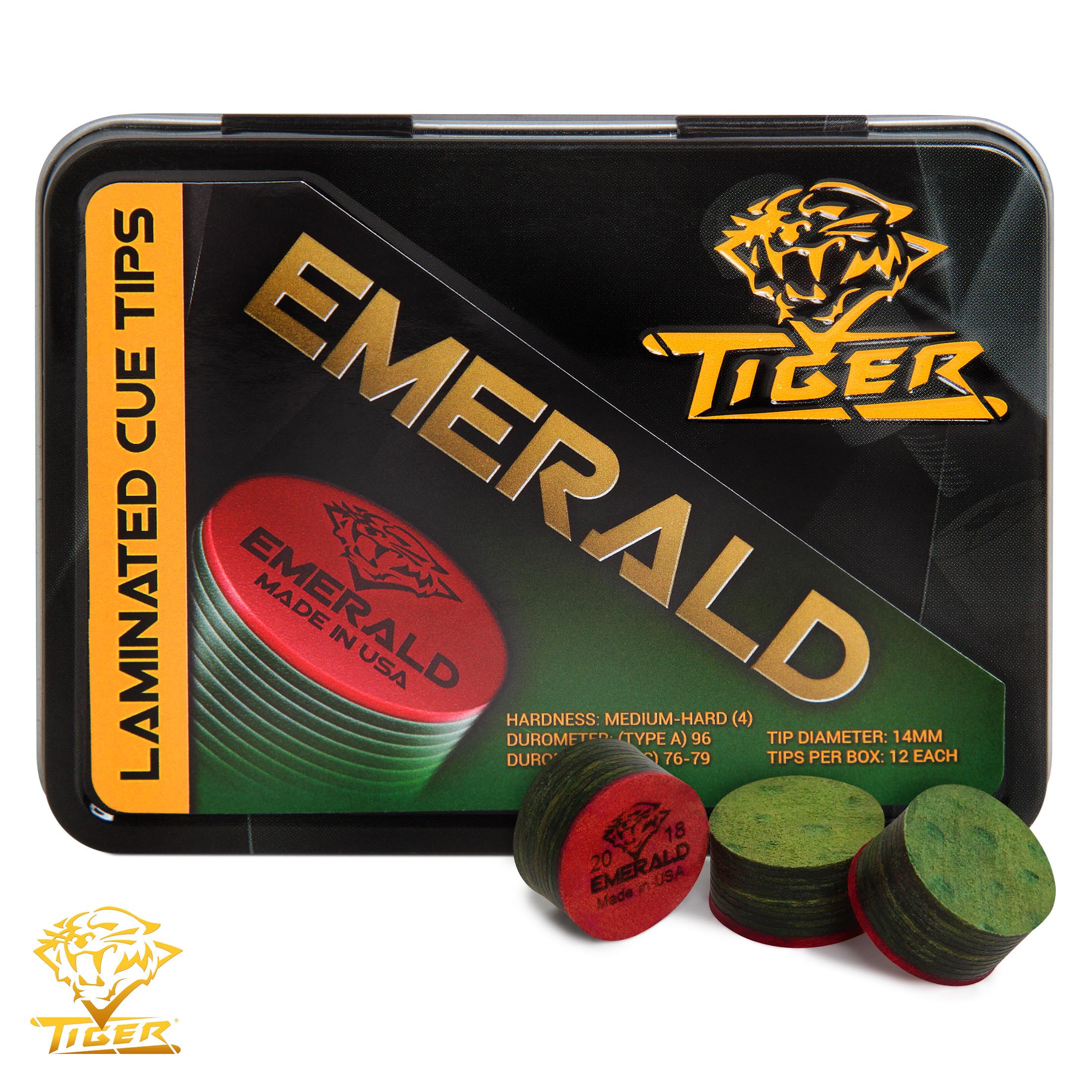 В результате многолетних исследований и разработок с учетом рекомендаций специалистов по изготовлению киев и профессиональных игроков компанией Tiger Products, одним из лидеров среди производителей бильярдных наклеек и средств по уходу за кием, разработана наклейка Tiger Emerald. Она содержит десять слоев высококачественой свиной кожи.